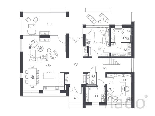 В продаже вилла площадью 241,4 м2 на участке 7,26 соток от застройщика «Самолет» в загородном проекте PORT EMM ZAVIDOVO.