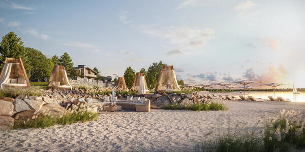 Загородный курорт премиум-класса на берегу Волги в 1,5 часах от Москвы по трассе М-11. Также есть пристань для катеров и вертолетная площадка.