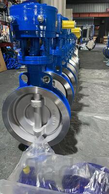 Затвор дисковый поворотный трехэксцентриковый межфланцевый стальной WCB с редуктором